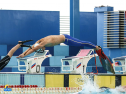 體育中心/綜合報導 面對鏡頭總是靦腆微笑,在泳池裡卻沉穩俐落,邱少宏在112年理事長盃全國錦標賽將國男組50公尺屏氣潛泳和50、100、200、400、800及1500公尺水面蹼泳金牌全數收入口袋,並且全數皆破大會紀錄,在100公尺水面蹼泳項目更是游出39秒26的佳績,勝過高男組的大會紀錄。112年理事長盃全國蹼泳錦標賽,邱少宏破大會紀錄七金收入袋。(動澤運動媒體 提供) 邱少...... [閱讀更多]