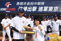 嘉義市長黃敏惠特地在球賽開打前到場,贈送象徵「強棒出擊」木雕,由中華隊長王威晨代表接受/陳致愷翻攝 2023世界棒球經典賽開打在即,中華職棒大聯盟安排中華隊2月17日及2月21日移師嘉義市立棒球場舉辦賽前的練習賽,分別對上由洪一中總教練領軍的台鋼雄鷹及中華隊林岳平總教練所屬的統一7-ELEVEn獅;嘉義市長黃敏惠今(17)日偕市府秘書長陳永豐等一級主管,特地在...... [閱讀更多]