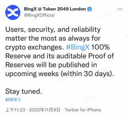 BingX計劃將在未來30天內發佈其100%儲備金證明 – 民生頭條