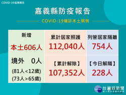 嘉縣10/28增606例本土新冠 無症狀佔532人