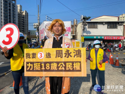 台中市議員周永鴻響應萬聖變裝,28日一早化身知名動漫《鬼滅之刃》中的「我妻善逸」,在大雅區雅潭路五叉路口向上班上課的鄉親問好,請大家議員要票投「我妻3逸」。除了爭取支持,周永鴻也宣導18歲公民權公投,希望大家踴躍投下同意票。 周永鴻表示,他這次扮成鬼滅之刃裡的我妻善逸,搭上萬聖節變裝風潮外,還有更深的含義。《鬼滅之刃》中我妻善逸參與的鬼殺隊不畏強權,台灣面對惡鄰...... [閱讀更多]