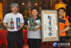 永昌宮發表主神銅雕、墨寶及限量酒。 奉祀三國名將趙子龍的台南市佳里區子龍里永昌宮,信徒林昆德感念神明庇祐,出資請名雕塑家蕭任能雕塑主神趙子龍銅雕像,10日,將第二版銅雕捐給廟方典藏,此外,也請曾擔綱蔡英文總統春聯「平安金猴」的書法家林佳穎書寫「智勇雙全」墨寶,更商請酒商推出限量紀念酒。永昌宮主委謝清安表示,年底該宮將至中國河北正定縣拜訪河北趙子...... [閱讀更多]
