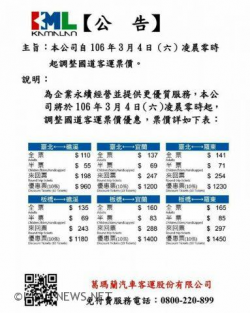 記者翁正杉/宜蘭報導 國五高速公路自3月4日起,主跑台北-宜蘭的客運公司紛紛調漲票價,其中噶瑪蘭客運羅東-台北由原來的135元調至141元,首都客運羅東-台北由原來的120元調至128元,調幅約在0點044%至0點0點066%之間,國光客運則未發佈新票價,但調整是必然的。 雪隧通車十年8個月又4天,早期由首都客運及噶瑪蘭客運兩家主跑,現在又新增國光客運及大都會客運來疏運大量的旅客,...... [閱讀更多]