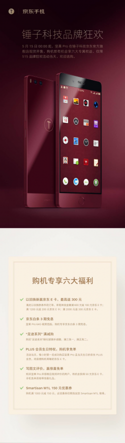 515 錘子科技京東品牌狂歡,堅果 Pro 現貨銷售中