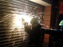 【記者邱淑珍/宜蘭報導】 宜蘭市新民路130號今晨2 點37分發生火警,消防人員用電鋸破門,並在頂樓用雲梯車將三人救下來,至於起火原因則由警、消單位調查中。 宜蘭消防局是在今晨2點37分許接獲民眾報案指出,宜蘭市新民路130號有火警發生,消防人員抵達現場後,發現電動鐵門無法啟動,於是用電鋸切割,火場濃煙,而在頂樓上有2大1小共3名受困民眾(2男1女),於是出動雲梯車順利將3人救下。 ...... [閱讀更多]