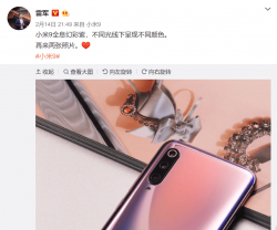 小米9就要來了!前陣子小米放出預告,表示將在2月20日發布最新一代的旗艦手機小米9,同時也曾曝光過一些簡單的上手圖,大家能看到的是藍色且待七彩反光的機身,同時也能看到這款手機配備了後置三攝以及水滴屏,而現在更多版本的小米9陸續曝光了! 首先是雷軍親自曝光的小米9幻彩紫配色,可以注意看到在不同光纖的狀態下...... [閱讀更多]
