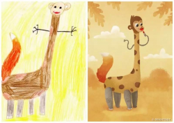 孩子們的畫,經過插畫師重新創作,比魔法還神奇!