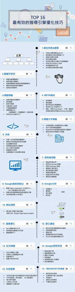 【推薦本文原因】 SEO怎麼做? 越來越多人開始學所謂的內容行銷、經營自媒體並且做SEO優化技巧,然而SEO優化技巧的部分其實範圍非常的廣泛,今天筆者來幫大家整理了一份訊息圖一次統整SEO行銷與優化技巧必備16項工作檢查清單,讓執行SEO時不用在害怕忘東忘西,讓SEO優...... [閱讀更多]