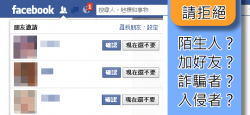 不知道大家這幾天有沒有注意到在 FaceBook 上面突然有好多人希望加入當朋友,但我根本就不認識對方呀!這個時候您通常會怎麼做呢?覺得多一個朋友也很酷,就直接接受了?還是會先進入這個人的臉書上看看,然後再決定要不要加?或者看看有沒有共通認識的朋友再決定要不要加?今天之後,這些動作您都要更小心唷..... 以下是可能發生的原因,請大家注意: 一、因為某些遊戲的競賽、活動...... [閱讀更多]