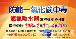 桃園市108年燃氣熱水器遷移更換補助元旦起受理,防範一氧化碳中毒。 冬天到了,民眾除了注意保暖外,更要正確使用瓦斯熱水器,據消防署統計,今(107)年全國一氧化碳中毒事故有54例,造成11人死亡、171人受傷,分析自100年至106年的中毒案例中,約8成是因為屋外式熱水器裝設在通風不良場所。 桃園市政府消防局為防範居家熱水器裝設不當造成一...... [閱讀更多]