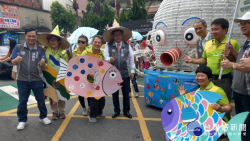 桃園地景藝術節百魚遊富岡 三條色彩繽紛大魚共遊老街區