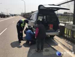 警員幫廂型車蔡姓駕駛換備胎。 楊梅警分局幼獅派出所所長塗志偉,日前因巡邏勤務行經台66線快速道路上,在東向12公里處發現道路上有一根1公尺長鐵管,恐影響行車安全,就在所長要上前撿拾前,一輛綠色廂型車就恰巧壓過鐵管並發生爆胎意外。 塗所長迫於車輛往來速度飛快,為避免發生交通意外,恐再造成更大事故,趕緊將道路上的破輪胎和鐵管撿起放置車內,並...... [閱讀更多]
