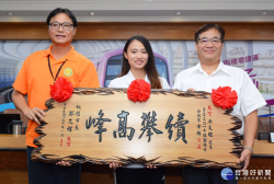 桃園市副市長游建華於市政會議中頒獎表揚廖文暄,體育局長夏金興也陪同受獎。 桃園市跆拳道選手廖文暄,參加「2017韓國春川公開賽」獲得1金2銀1銅佳績,表現十分亮眼,30日下午於桃園市政府市政會議中,接受副市長游建華公開表揚。 桃園市副市長游建華30日下午主持市政會議時,特別表揚廖文暄選手的優異表現。市府體育局長夏金興也盛讚廖文暄為台灣、為桃園爭光...... [閱讀更多]