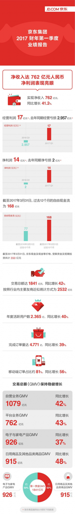 京東集團發佈2017年一季度財報:凈利潤達14億 超2016年全年
