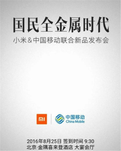 小米聯合中國移動定在8月25日召開新品發佈會