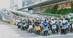 近 500 名 Gogoro 車主快閃台北橋,打造零排放、低噪音機車瀑布