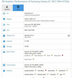 Samsung Galaxy A3 (2017)現身GFXBench