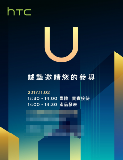 HTC 台灣邀請函釋出,U 系列全新旗艦將於 11/2 下午 2 點登場