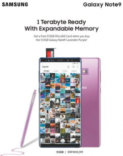 Samsung Galaxy Note 9熏衣紫正式登陸大馬 現在入手還可以將容量擴充至1TB!