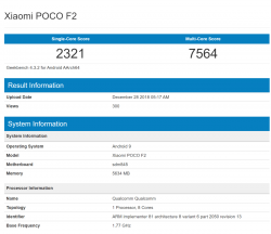 疑似小米Pocophone F2現身Geekbench:搭載驍龍845+6GB RAM,運行Android Pie?