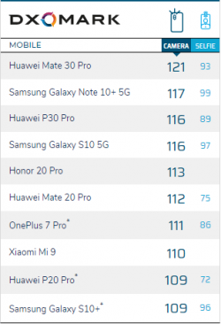 Huawei Mate 30 Pro 121分稱霸DXOmark榜單:拍照得分最高131分!