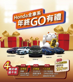 Honda全車系年終GO有禮即刻起跑、明年1/31前領牌有機會獨得100萬現金!
