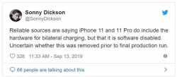 消息指稱iPhone 11原本就支援反向無線充電,但最終以軟體限制