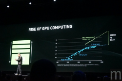 相比過去幾年的處理器發展模式,NVIDIA執行長黃仁勳在GTC 2017主題演講引述史丹佛大學在今年三月的統計分析,顯示每年資料量持續呈現爆炸成長,但傳統處理器成長速度卻相對趨緩,並且逐漸脫離過往摩爾定律成長模式,不過隨著GPU技術持續成長,同時也因為電晶體數量持續增加,而整體耗電量也持續降低之下,藉由GPU加速演算模式幾乎以每年呈現1.5倍速度成長,估計在2025年將產生高達1000倍的...... [閱讀更多]