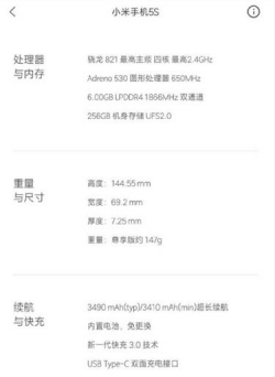 疑似小米5S 硬體配置曝光:高通821+256GB機身存儲