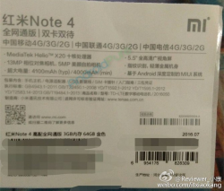 紅米Note 4規格確認! Helio X20處理器、4,100mAh電池